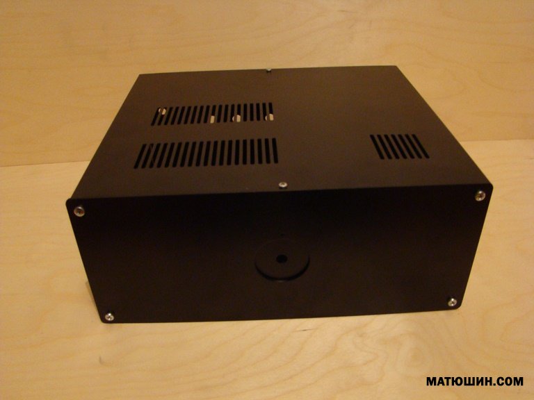 Корпус "Универсал-1" для одного RCA входа и для четырех выходных клемм, внутри корпуса предусмотрена платформа для монтажа компонентов с разделительной пластиной на сектор питание-усилитель. Краска порошковая. Размеры корпуса 300х280х120мм, размер отверстия для ручки управления регулятор громкости во фронтальной панели 42мм., разъем сеть - блок в комплекте.. В данном корпусе можно установить усилитель РР 6П15П, SE 6П15П, SE 6П1П, SE 6Ф3П с кенотронным питанием. Пример исполнения см. раздел "Ламповые усилители".