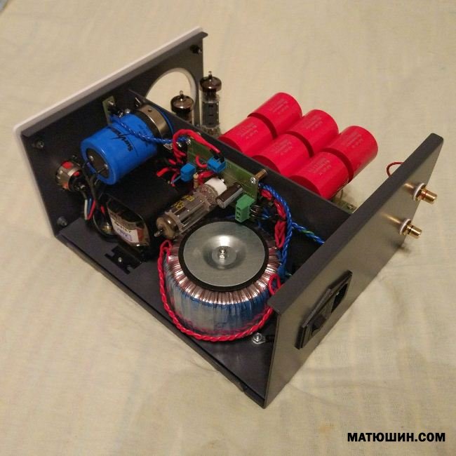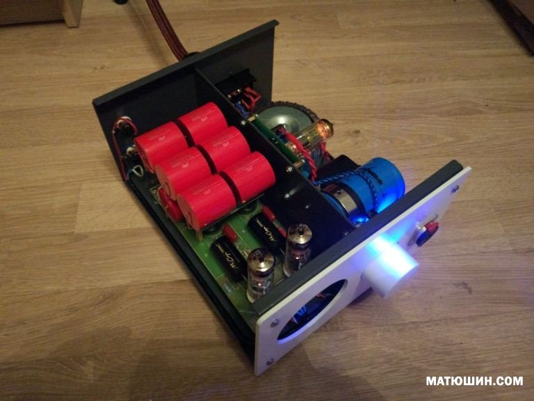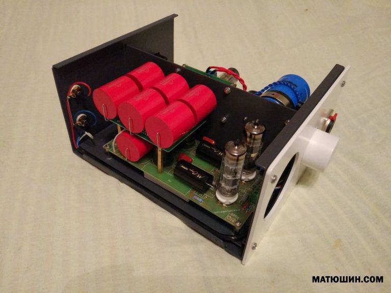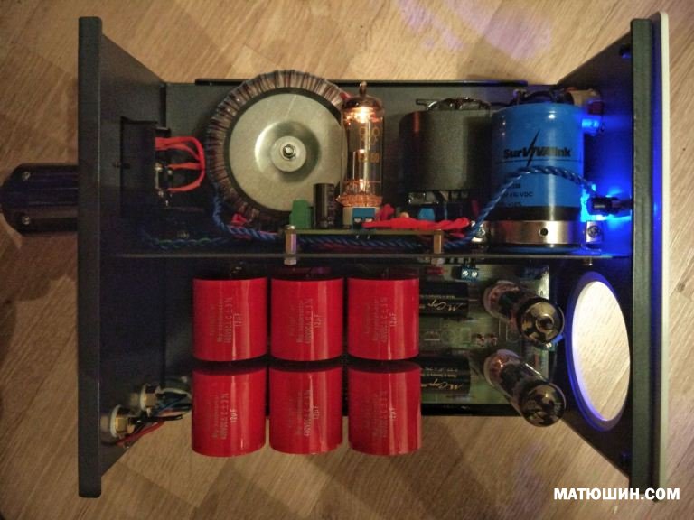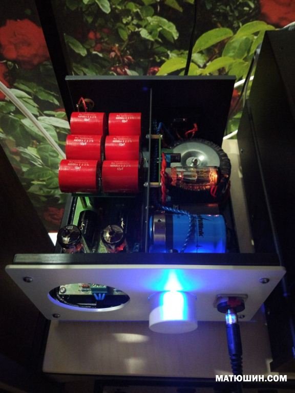 Перед первым включением я, конечно, волновался, а вдруг я что-то не так подключил, "накосячил" при сборке.  Включил … жду. Слава Богу, накал на лампах плавно засветился теплым желтым светом, трансформатор в течение 3-х секунд слегка загудел и успокоился (вошел в насыщение). Решено, подключаю к источнику – медиаплееру Soundaware D200 в связке с мультибитным ЦАПом Audio-GD DAC-19, вставляю штекер своих наушников Byerdynamic DT-250, надеваю их на уши, включаю Поля Мориа и залипаю на полчаса. Как описать тот восторг и удовольствие от того, что усилитель заработал с первого раза (спасибо С.Матюшину на правильно подобранные номиналы деталей) и не просто заработал, зазвучал! Не побоюсь утверждать, что в звучании данного усилителя есть магия, то неуловимое чувство, ощущение, что музыка доходит "по адресу", вызывает бурю эмоций, переживаний, то ради чего мы ее и слушаем.