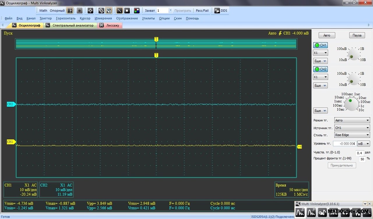 осциллограф показал большее значение, но он возможно подвирает на таких малых значениях измерений, в любом случае фон настолько мал что практически его сложно услышать.