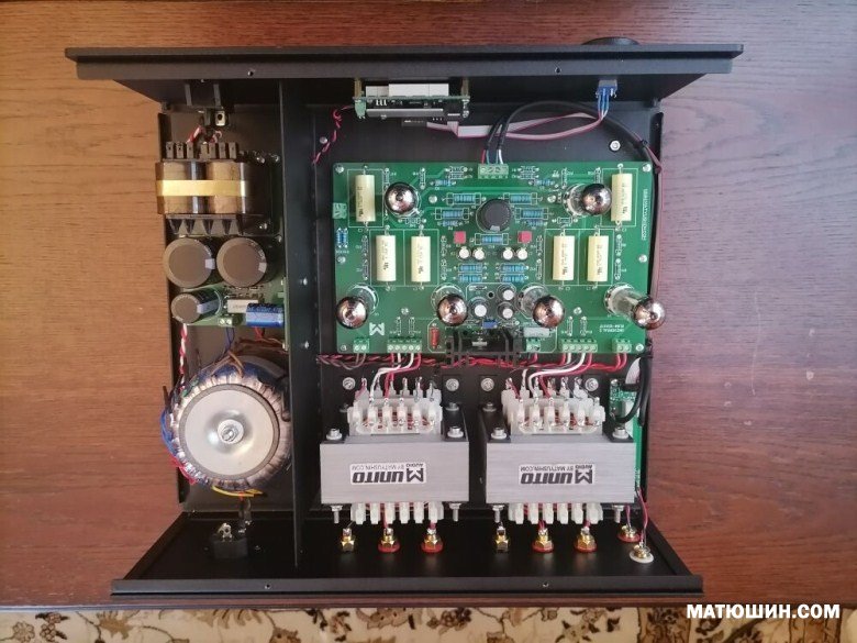 В новом исполнении играет интереснее. Все же предыдущий Универсал был немного резковат. Universal Studio так назвали новую версию. Что можно отметить —  Высокие более утонченные. Бас собран. Играет помягче . ни какого намека на резкость. Основные отличия от предыдущей версии. Новая разводка печатной платы. Стабилизатор анодного питания. Увеличена емкость электролитов блока питания. Регулятор громкости Никитина. Усилитель на столько понравился , что решили сделать его в моноблоках.