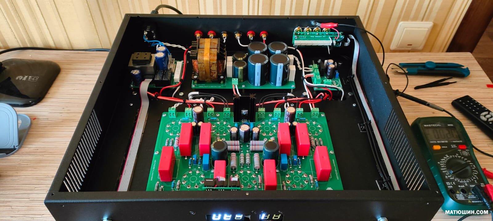 200т.р класс АВ.Без оос .40 вт ,4 входа Дежурный режим .Пульт Выходные симметричные 165 вт г м. М6.10 гц-45 кГц, Резисторы mf, carbon, конденсаторы samhwa,wima.Стабилизатор анодного,фиксированное смещение.Корпус сейчас доступен только в варианте ,светлая накладка, светлая панель и черная задняя панель ( она может быть и светлой). Управление всеми опциями как с пульта ,так и с передней панели.. Лампы Кт88 преимущественно Genalex,на входе 6sn7 Tungsol.