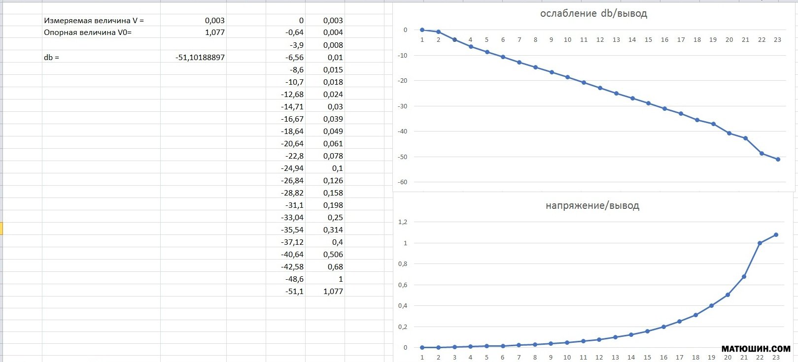 График ослабления по Дб и шаг по напряжению.
