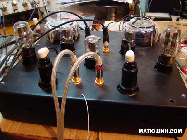 На входе малошумящий пендод 6Ж7. Далее СРПП с катодным повторителем для выравнивания вход-выход. Достойно звучит.Внешний вид не окончательный..( Колпаки передняя панель).