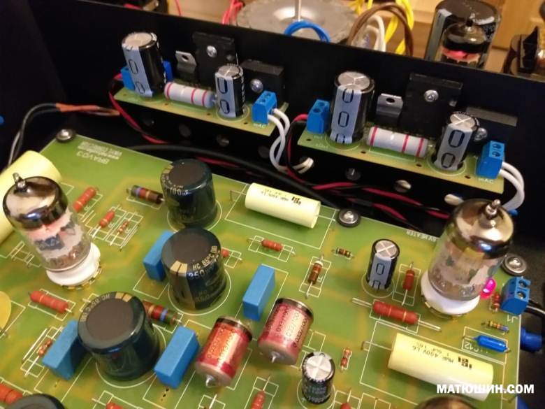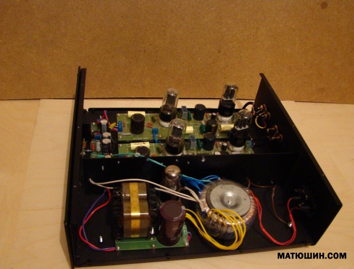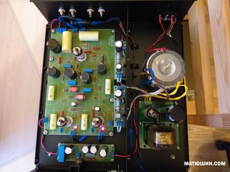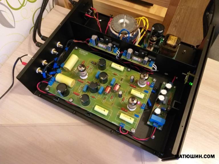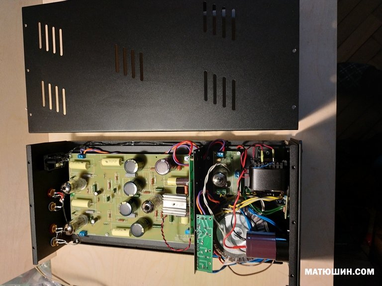 6Н8-6С2С с распределенной коррекцией. Будем слушать, после будет заключение, первая прослушка показала не плохой результат. удивил приятно очень плотный звук, такое ощущение что его можно потрогать, в общем выложу потом отзыв, фото не причесывал, поскольку кто знает может понадобятся какие либо еще до настройки. Габаритные размеры 335х365х110 мм.