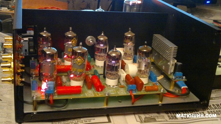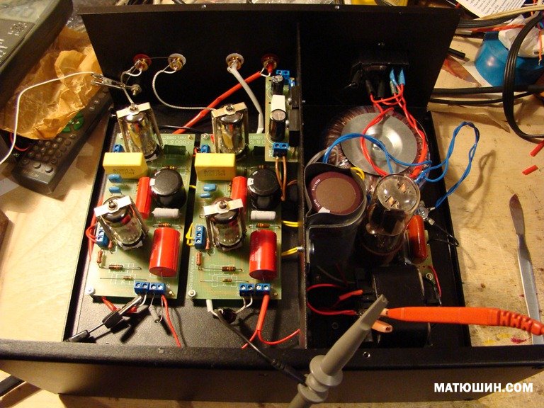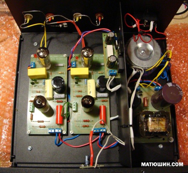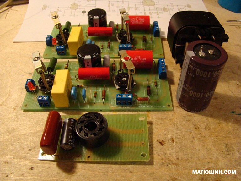 В комплекте . платы фонокорректора+6н2п-ев , стаб накала,плата блока питания, трансформатор, дроссель, разьемы.