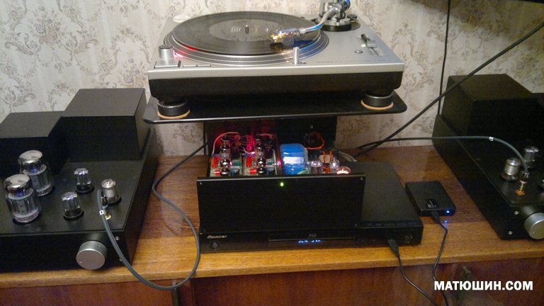 Питание кенотронное, компоненты все высокого качества, резисторы ALLEN BRАDLEY(доп опция-1500р),WISHAY,MOF,MF, емкости Panasonic,Audiophiler,Nippon,SAMNWA.Радиолампы EF860,ECC81.входные разъемы СМС.