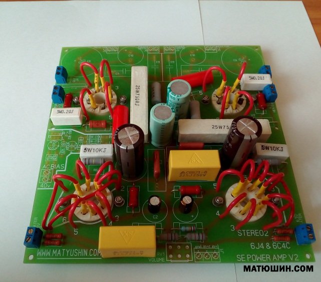 Набитый вариант изделия усилителя SE 6С4С, "NEW". Размеры печатной платы 175х185мм., толщина текстолита 2мм..