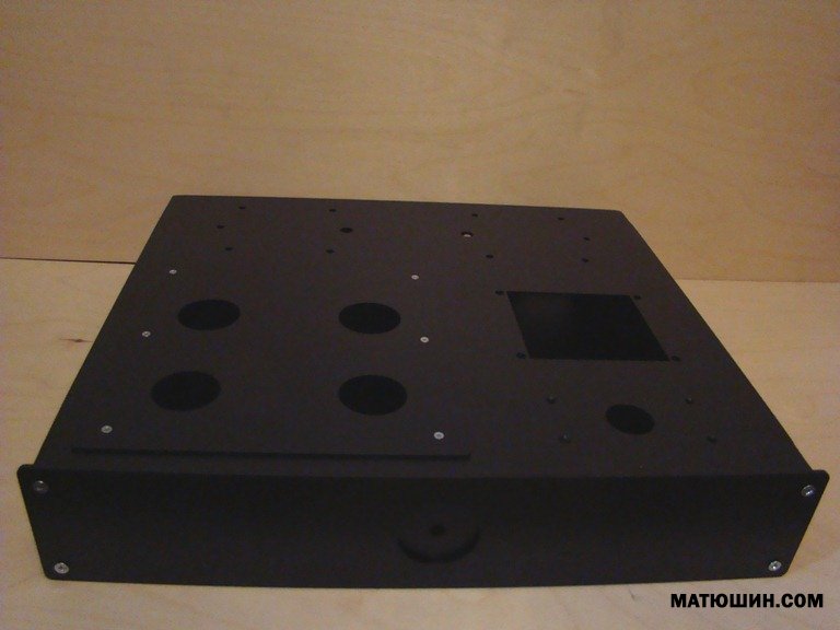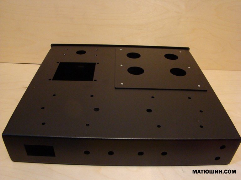 Корпус для однотактного усилителя на прямонакальных триодах 300В. Позже будут другие фото корпуса, в том числе и его компоновка. Размеры:400х360х70мм. 6500р.