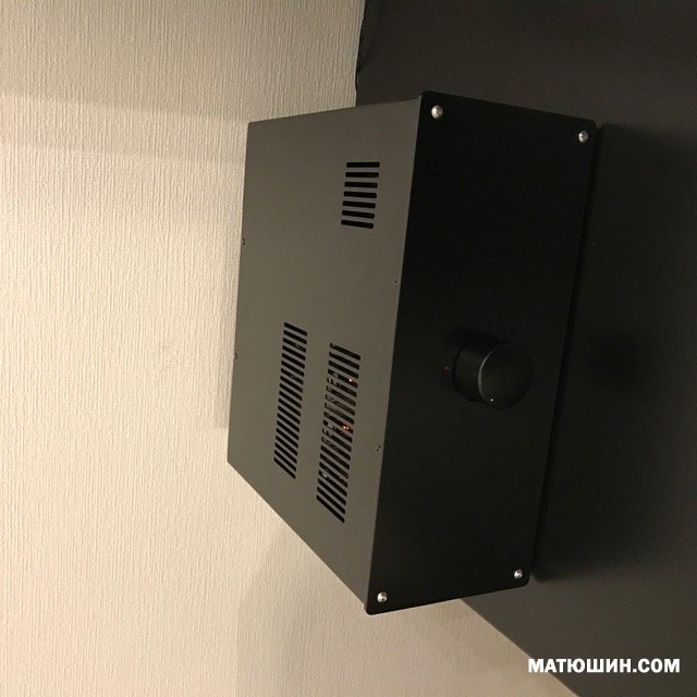 Корпус выполнен из толстого металла и покрыт порошковой черной краской. Выглядит несколько брутально, но мне нравится.