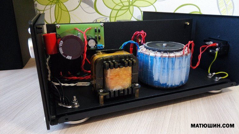 На фото усилитель Универсал-2 представлен в топовой комплектации. Для начала размеры корпуса усилителя относительно Универсал -1 увеличены и составляют 370х320х120. Силовой трансформатор усиленной габаритной мощности (для обеспечения высокого динамического диапазона), выходные трансформаторы на 120 Вт габаритной мощности, (Универсал-1-60Вт) намотанные со специальным секционированием с идеально симметричными обмотками полу плеч выходных каскадов, что обеспечивает усилителю мощности максимальную отдачу и минимальные потери при отдаче тока в нагрузку, что в свою очередь благотворно сказывается во всем динамическом диапазоне усилителя. Железо применяемое в данных трансформаторах М6 производства Германия., Надо сказать великолепный получился аппарат!!!. Усилитель, Цены на комплектацию и готовый вариант по запросу.