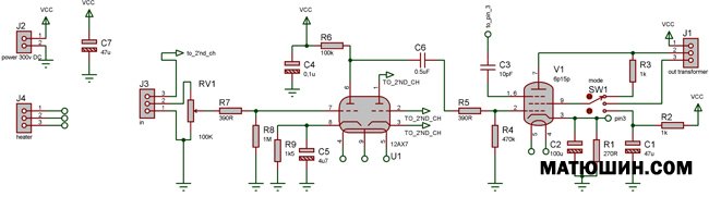 Возможно переключение режимов : Триод-ультралинейный-пентод.