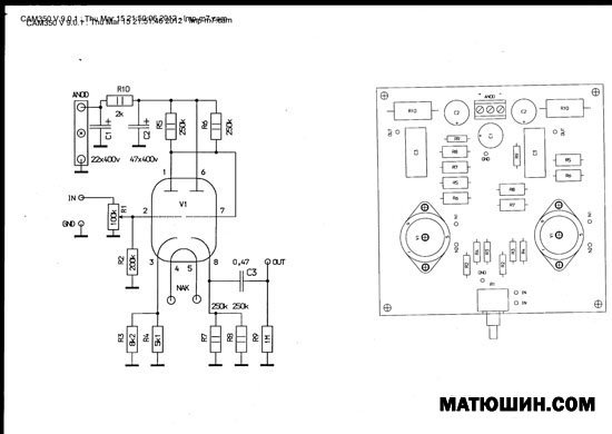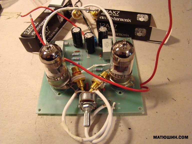 Первый каскад усилителя выполнен на половине лампы 6Н23П (6Н1П, 6Н2П, 6Н4П), второй каскад представляет собой обычный резистивный усилитель. Между первым и вторым каскадом включен широкодиапазонный регулятор тембра. В качестве потенциометра использован переключатель П2К. Применение фазоинверторного каскада, собранного по схеме с катодной связью (VL3), обеспечивает высокую симметрию выходных напряжений в широком диапазоне частот и малые нелинейные искажения. С предыдущим каскадом (VL2), представляющим собой катодный повторитель, фазоинверторный каскад связан гальванически, чтобы уменьшить сдвиг фаз на низких частотах, что улучшает стабильность работы усилителя.