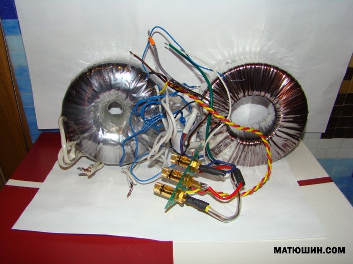 Так же тороидальный трансформатор можно без труда поставить на место, которое ранее занимал обычный трансформатор. Возможно изготовление специальных креплений трансформатора, либо смещение отверстий в стандартных креплениях.