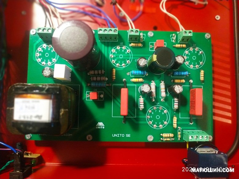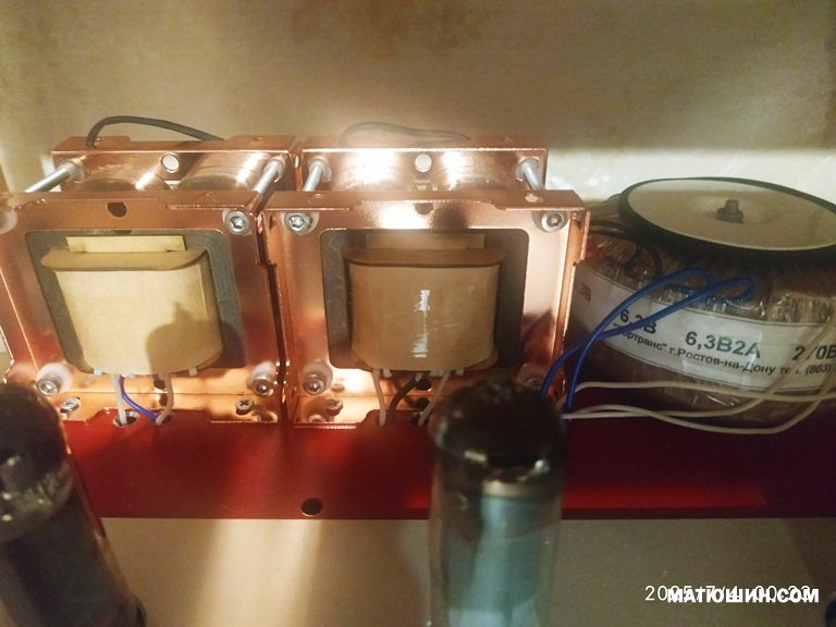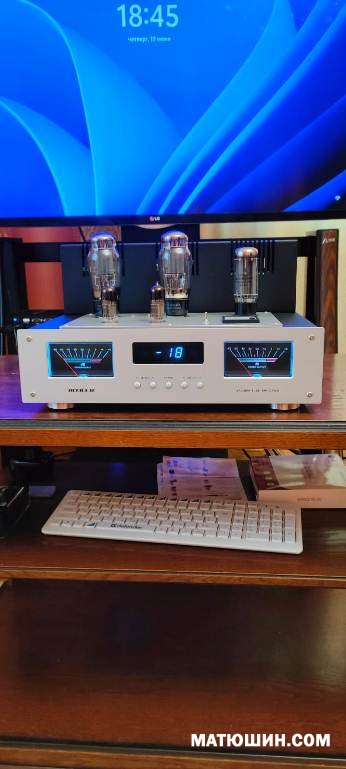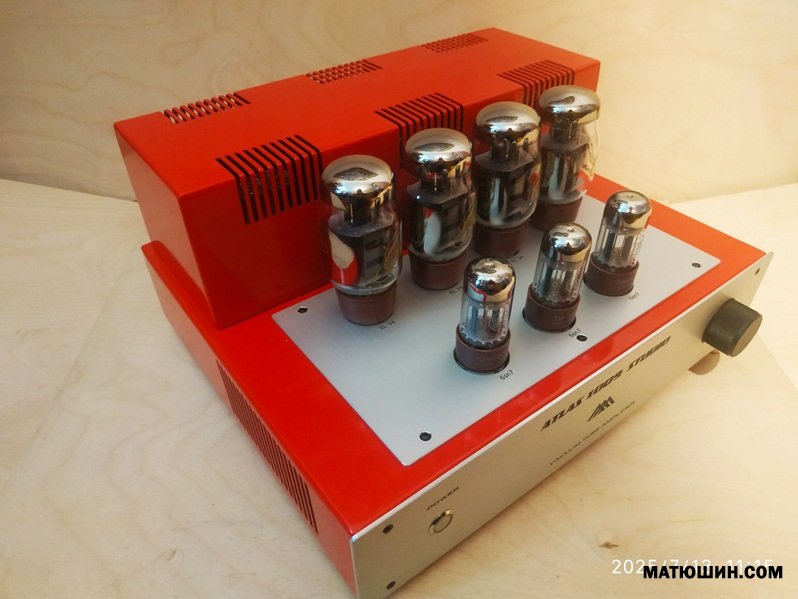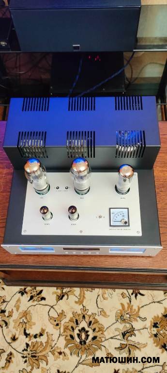 От себя Комплектация видна на фото. Лампы 6Э6П-6L6GT. Выходные на М6 165вт. г.м., с особым, подчеркну ,способом намотки и секционирования! 6Вт, до клипинга. Управление с пульта и кнопок, (сознательно ушли от крутилок), дежурный режим само собой. Соответственуо комбинированный "показометр" Индикаторы уровня выходного сигнала. На цифровом табло уровень громкости и состояние селектора входов (их 4) . Полоса по честному 20(-1дб)--20т(-1) Что для однотакта очень хорошо. По размерам: в глубину 360, в ширину 380, высота 200 мм. Стоимость данного усилителя вот в этой комплектации 200т.р